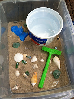 ανακατέψτε στην άμμο κοχύλια ή μικρά παιχνίδια