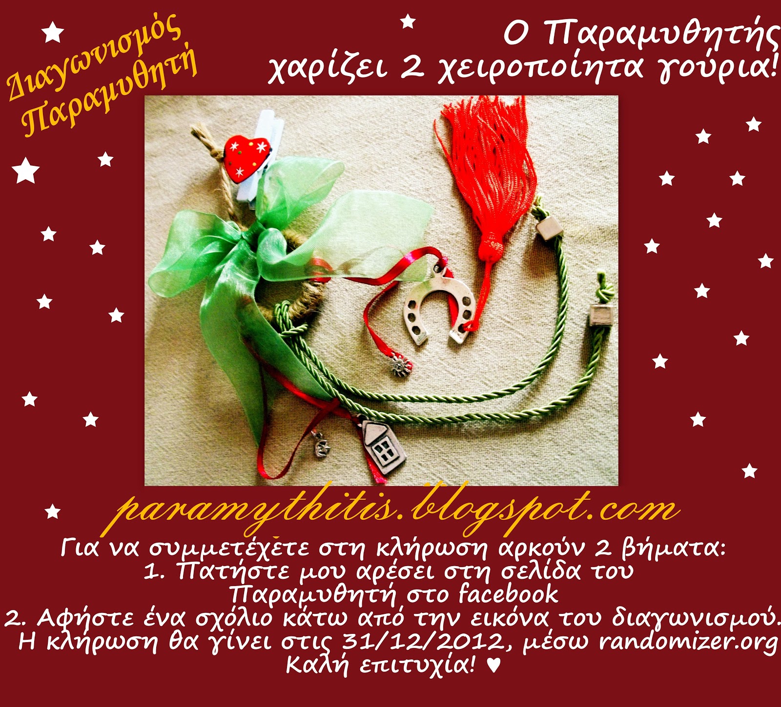 Για να συμμετέχετε στη κλήρωση που θα γίνει στις 31/12/2012, πατήστε Like στη σελίδα του Παραμυθητή